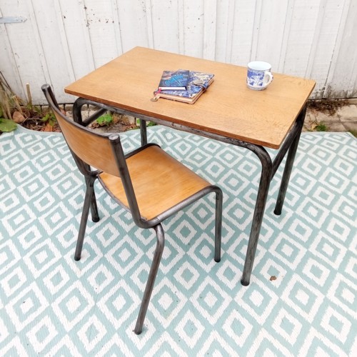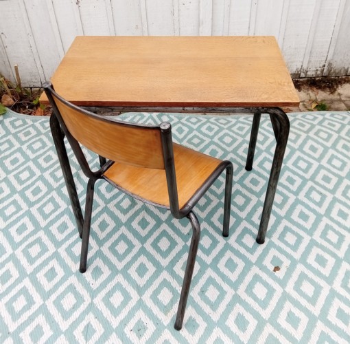| | Petit bureau d'écolier en bois avec un tiroir.
