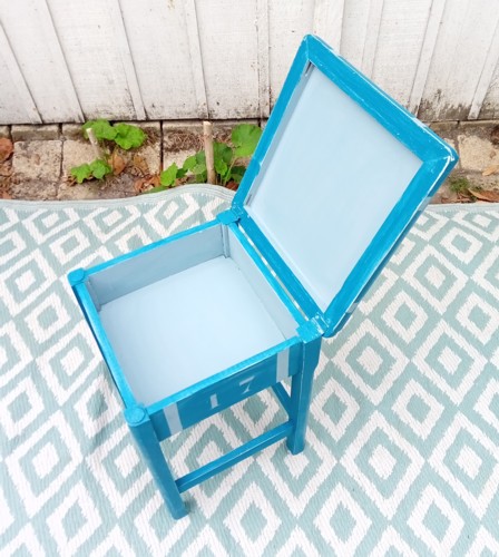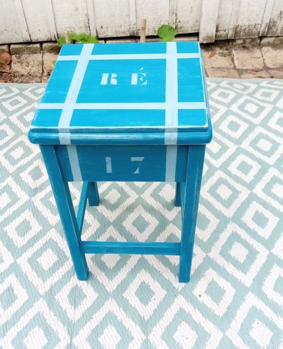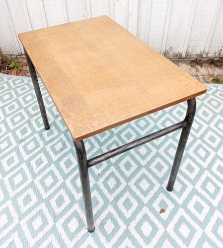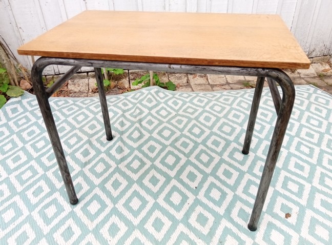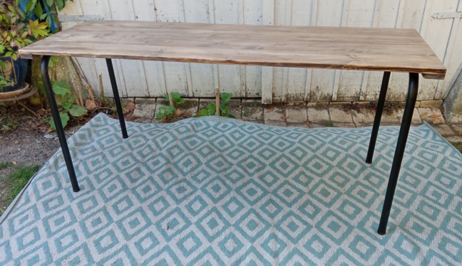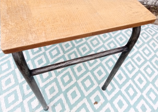 Le plateau quant à lui a été entièrement refait en bois , teinté chêne grisé puis huilé pour éviter les taches.