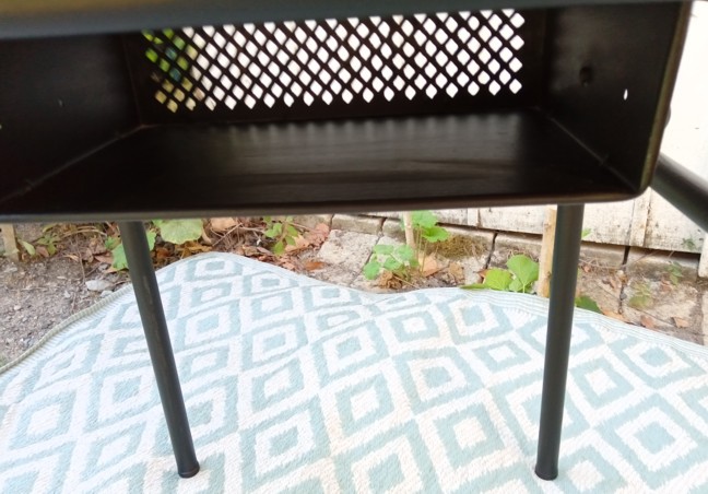La structure en fer ainsi que le caisson de rangement ont été décapés puis peints en noir mat.