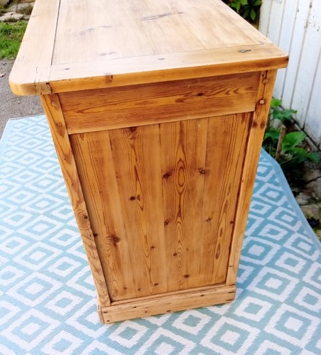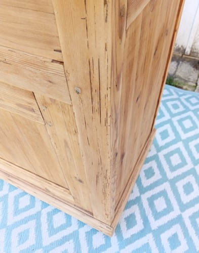 Décapé, traité ( de nombreuses traces de vrillettes) , il a retrouvé son joli bois blond clair.