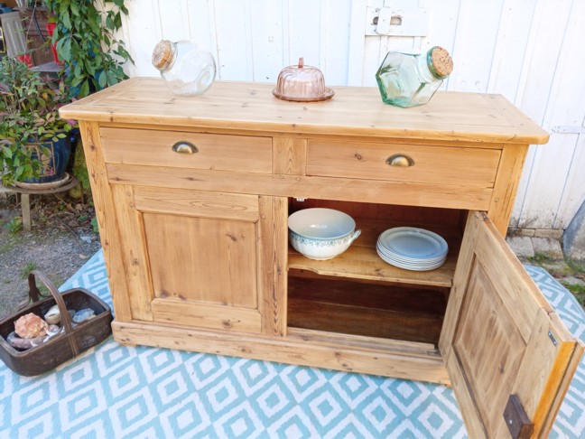 |  | | | | | Buffet en pitchpin 2 portes, 2 tiroirs.